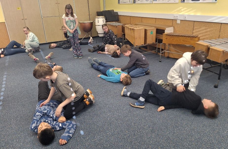 Darauf folgte die zweite Frage: „Was machen wir in einem Notfall?“ Schnell gingen alle Finger hoch: Jeder kennt die Nummer 112. Aber was passiert dann? Bei einem Anruf in der Rettungsleitstelle folgt als erste und wichtigste Fragen: Wo ist der Unfallort und was ist passiert? Bis dann der Rettungswagen eintrifft, benötigt die verletzte Person Hilfe.